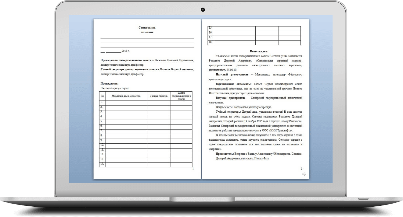 безупречную и достоверную стенограмму защиты протокольного вида, без смысловых, стилистических, грамматических и орфографических ошибок, которую